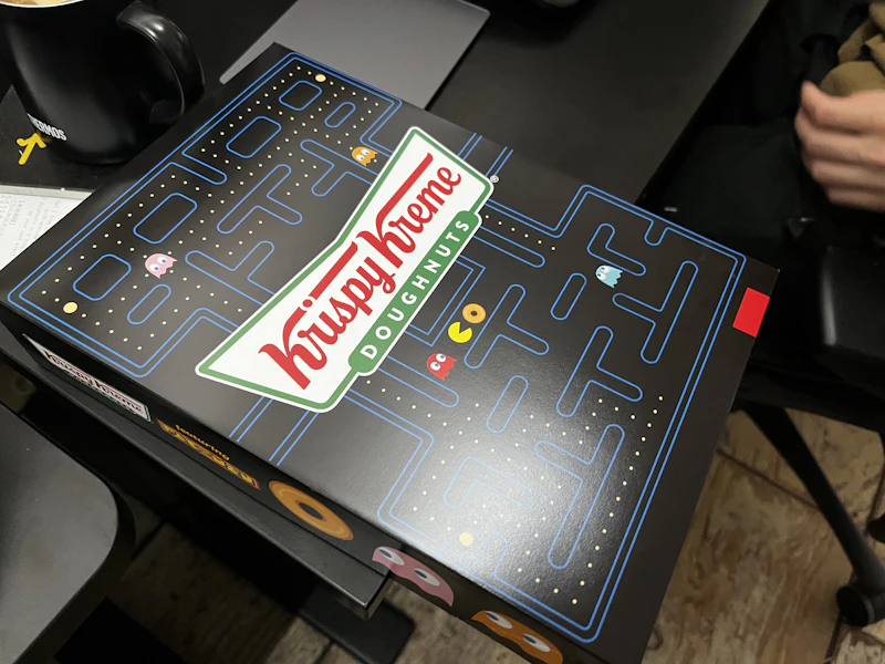 えー、弊社ではパックマンのドーナツが支給されたりしました