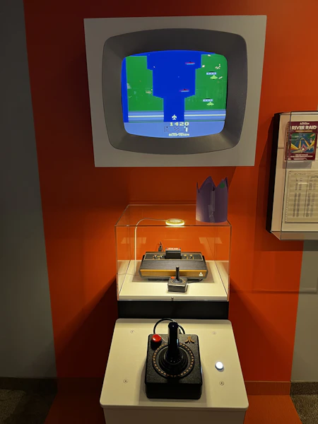 ゲームの歴史やプレイアブルな筐体が展示してある天井の高い空間。